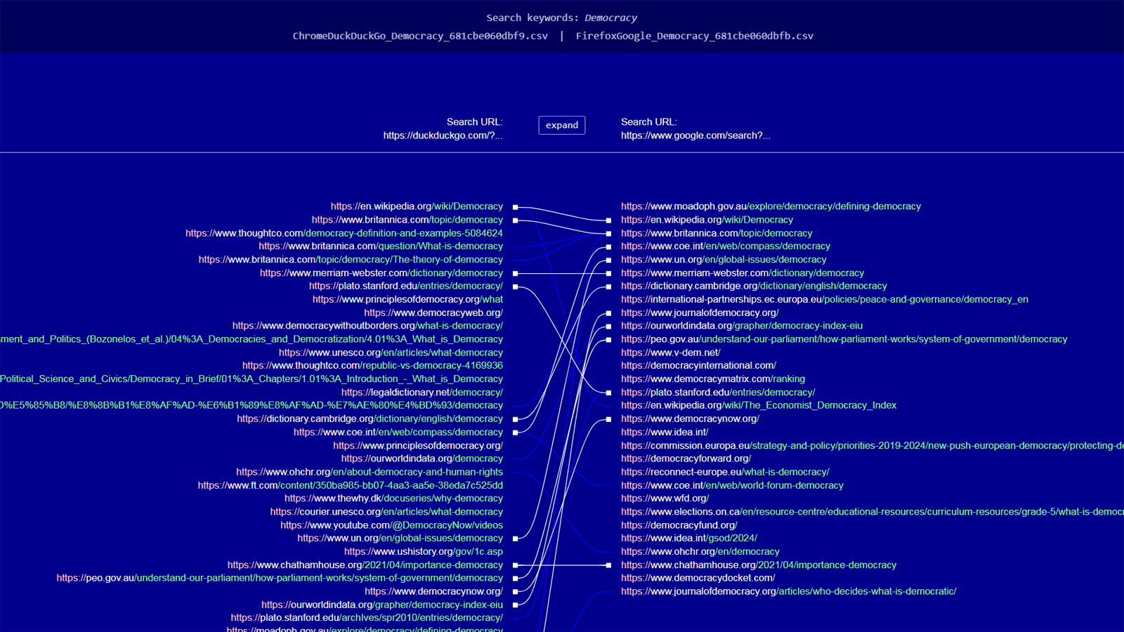 This interdisciplinary research strand addresses digital citizenship by investigating the ethics and politics of search infrastructures and, more specifically, open source and alternatives to prevailing search hegemonies. Material artifacts created by people, ‘infrastructures’ have physical and pragmatics properties, including telephone towers, GPS satellite systems and undersea internet cables that often appear invisible until they break down (Starr 1999). ‘Searching’ is the action of finding information, nowadays one of the most common online user activities and an important element in the development of the web and artificial intelligence. Knowledge Infrastructures of Searching combines these two words to focus on seeking information, which encompasses the environmental impact of telecommunication networks and data centres—the hardware that enables the transfer of data, as well as databases and search applications—the software that processes queries and provides search results.